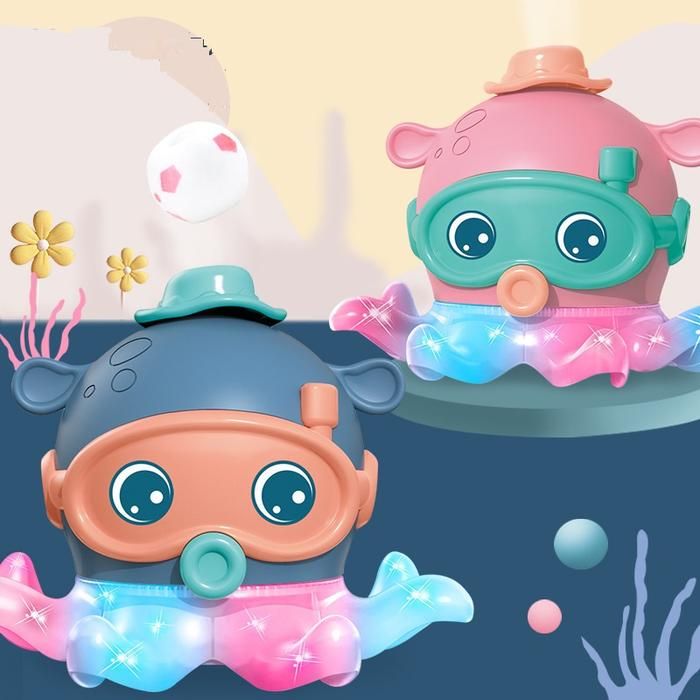 Mainan Anak Gurita Berjalan Tiup Bola Edukasi Bayi Octopus Ball Blowing Sirkus Suara dan Lampu Kado