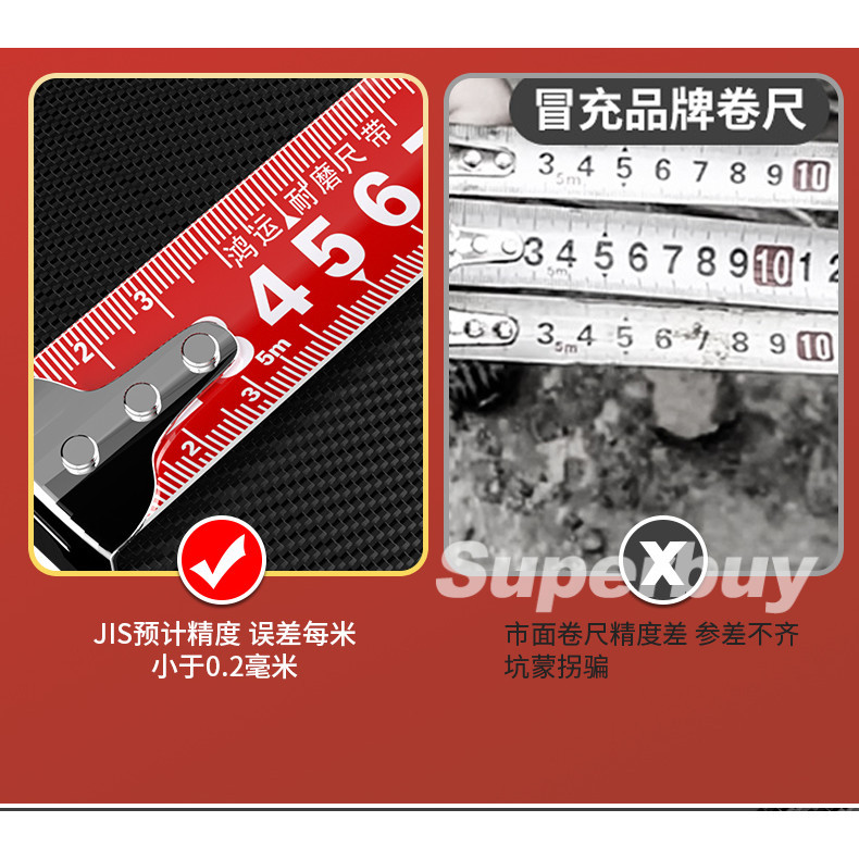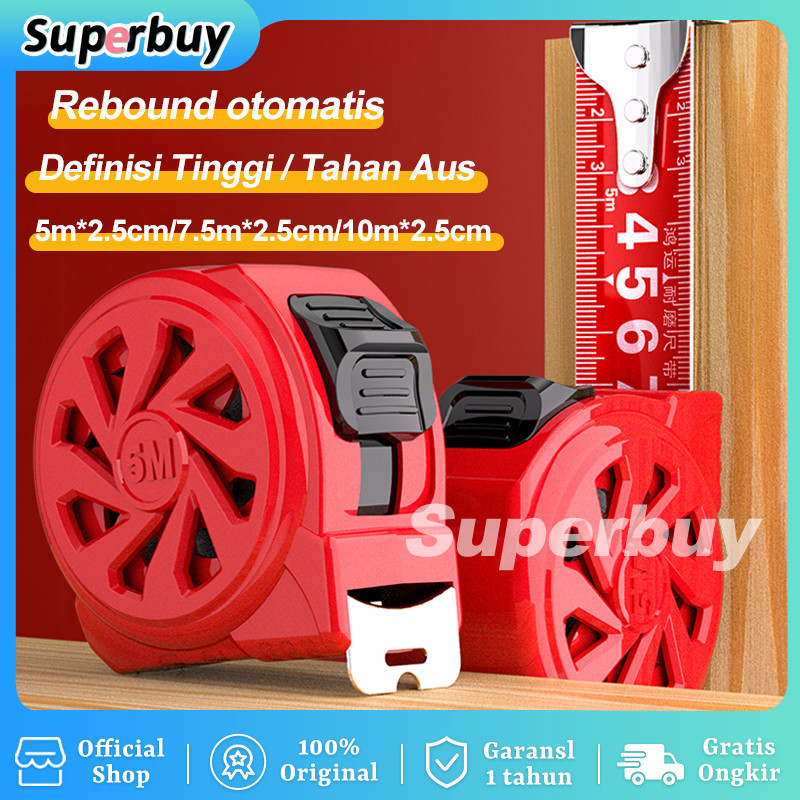 Meteran Pengukur 5m/7.5m/10m Kelas Industri Presisi Tinggi Bahan Stainless Steel Tebal Tahan Air Pita Pengukur Baja Taha