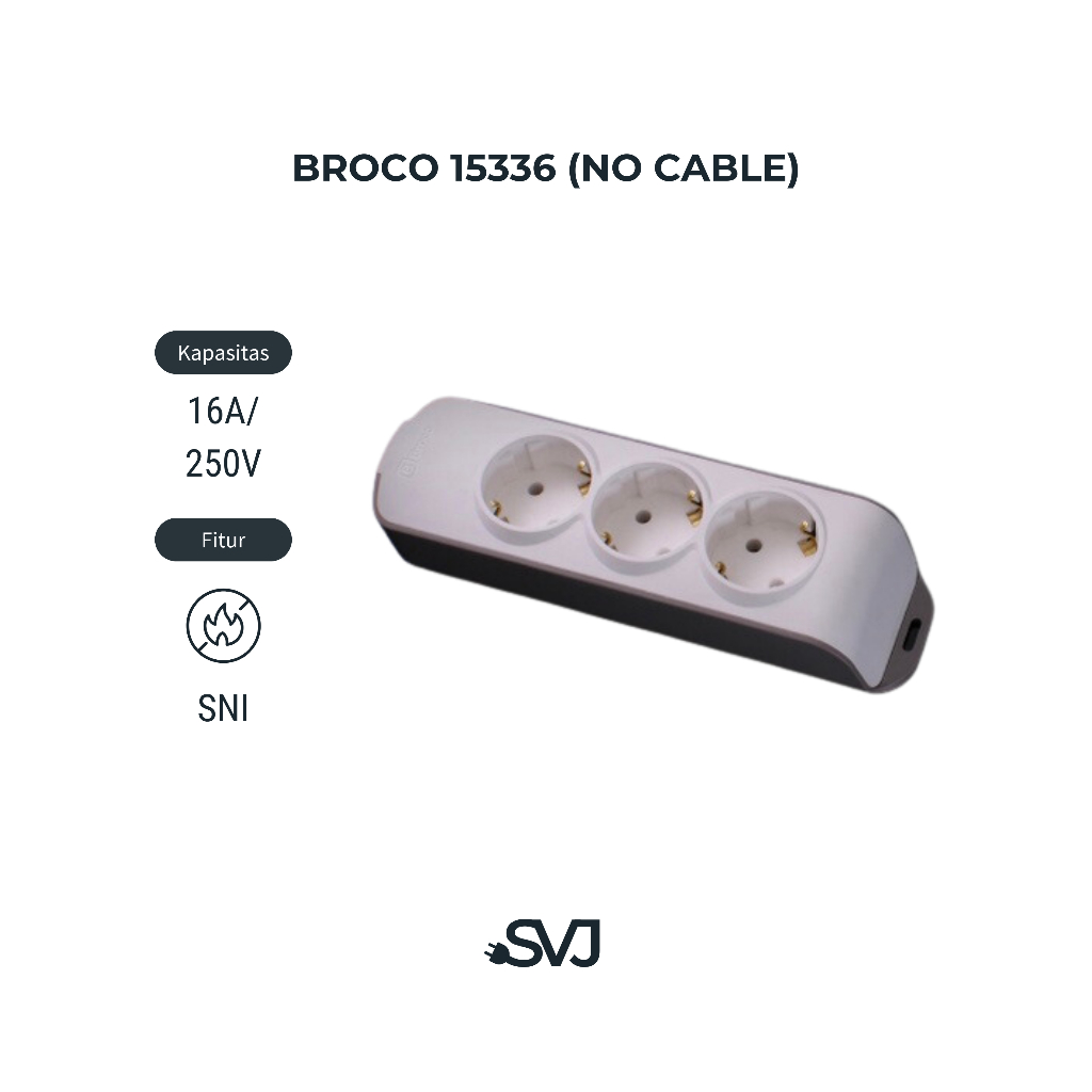 BROCO 15336 STOP KONTAK 3 LUBANG MIRING (NON CHILD PROTECTION)