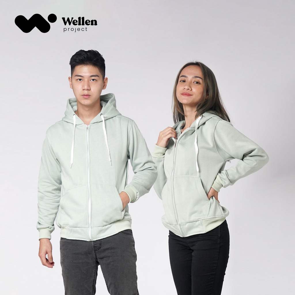 WELLEN PROJECT HOODIE ZIPPER SAGE GREEN JAKET SWEATER RESLETING HIJAU MUDA POLOS PRIA WANITA UNISEX
