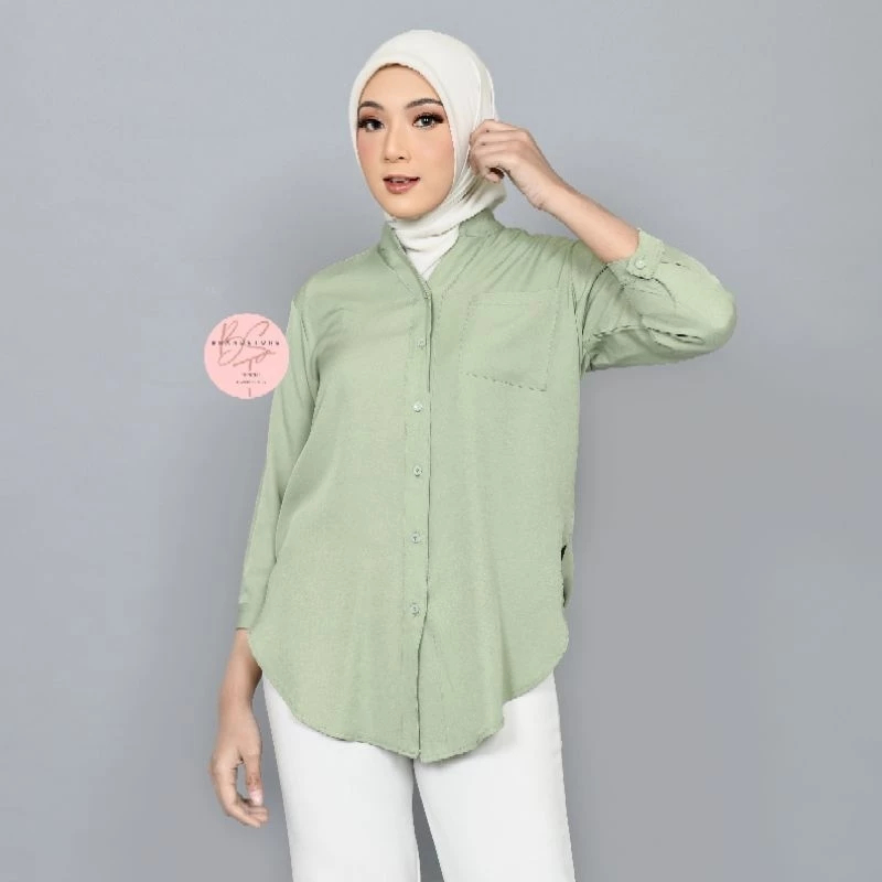 BRANDSTORE - Kemeja Shakila Botega Atasan Blouse Tunik Polos Kasual Standart Jumbo