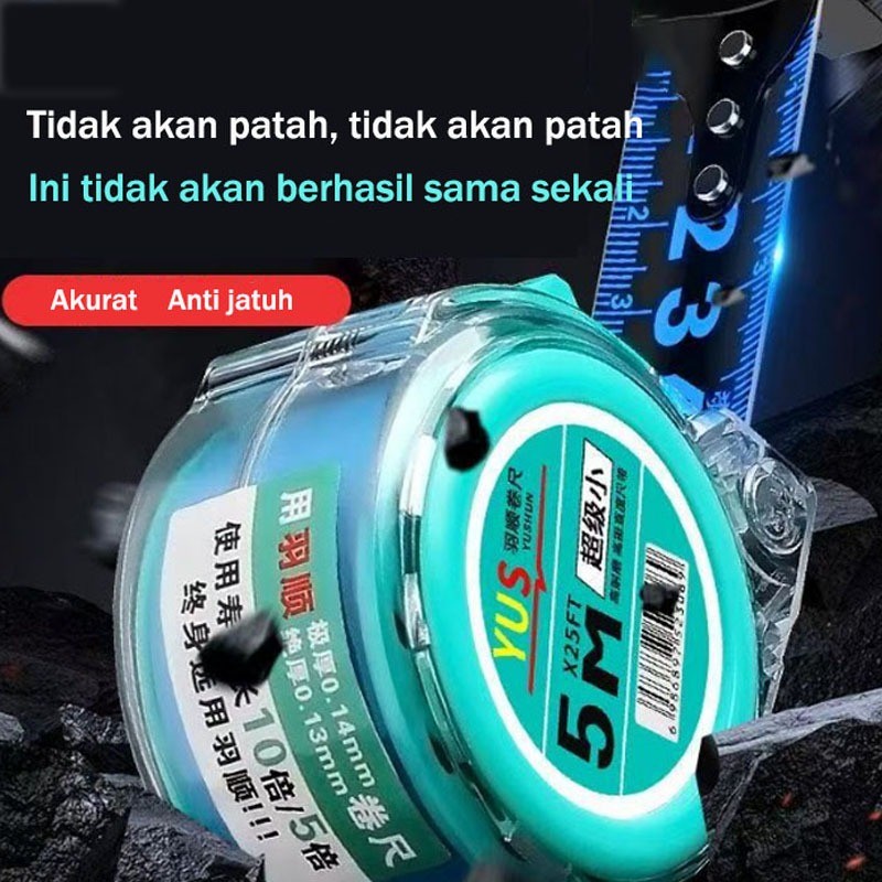 Meteran 10M anti karat Berteknologi Hitam Meteran tukang Ukuran pita fluoressen anti rust Tahan Banting Steel