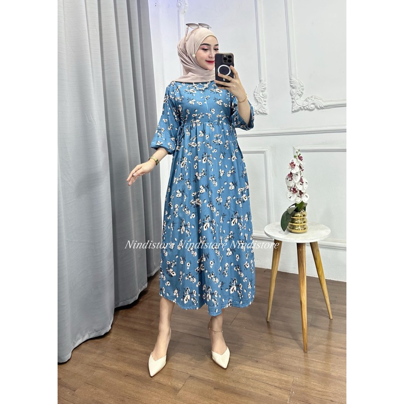 Dress Miranda Rayon Lengan 3/4 / Daster Rayon Motif Bunga / Midi Dress Busui
