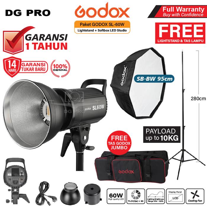 PROMO 8.8 PAKET GODOX SL60W SL60W SL60 W LIGHSTAND SOFTBOX LED STUDIO UNIT TANPA STAN TANPA TAS