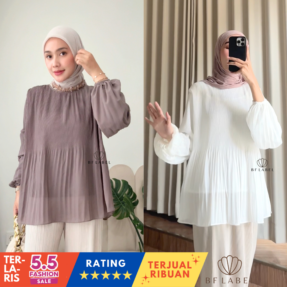 BF Label - FIONA BLOUSE | Pleated Shirt Atasan Plisket Wanita Premium | Lebaran Idul Fitri