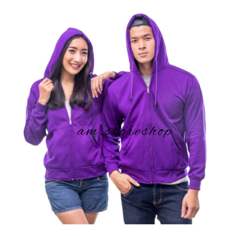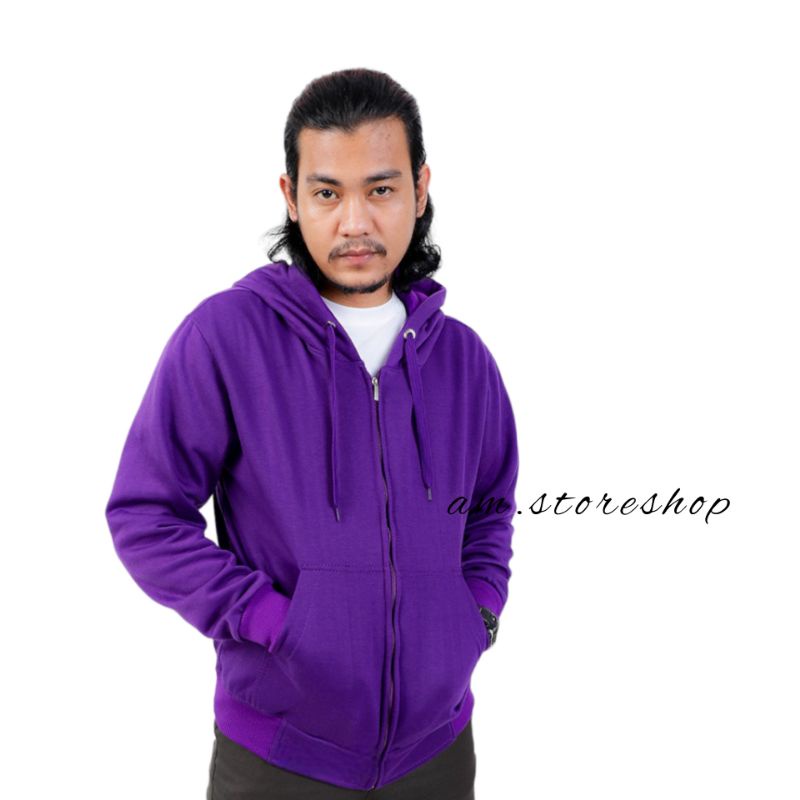 AMSTORE- JAKET HOODIE ZIPPER POLOS UNGU TUA UNISEX PRIA WANITA SIZE L XL XXL