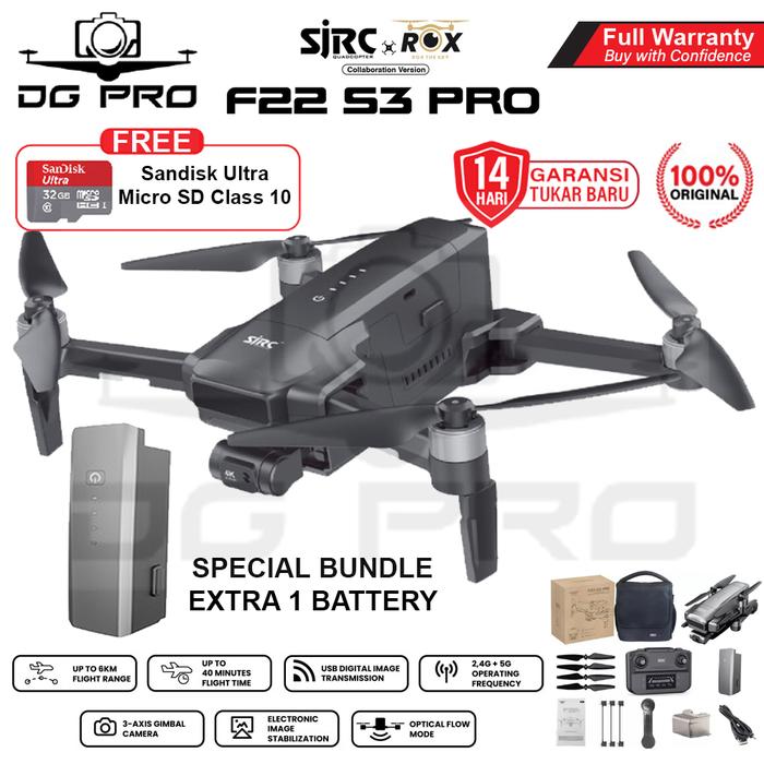 PROMO 8.8 DRONE SJRC F22S PRO SJRC F22 S3 PRO 3 AXIS GIMBAL 4K 35KM 35 MIN RC QUADCOPTER ORIGINAL F22 S3 XR SC 1 BATERAI FREE 32GB