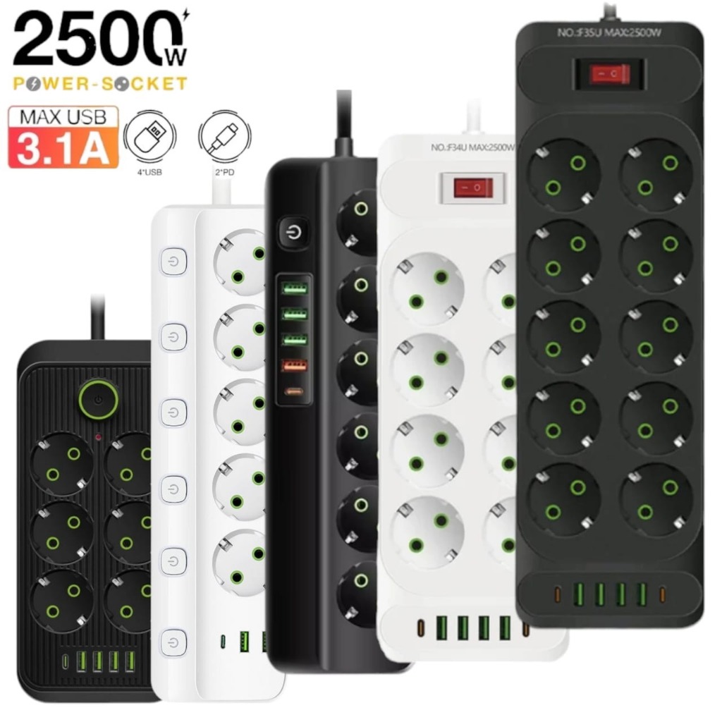 Stop Kontak USB Type C Terminal Sambungan Anti Panas 10A 250V 2500W 3 4 6 8 10 Lubang Steker Saklar