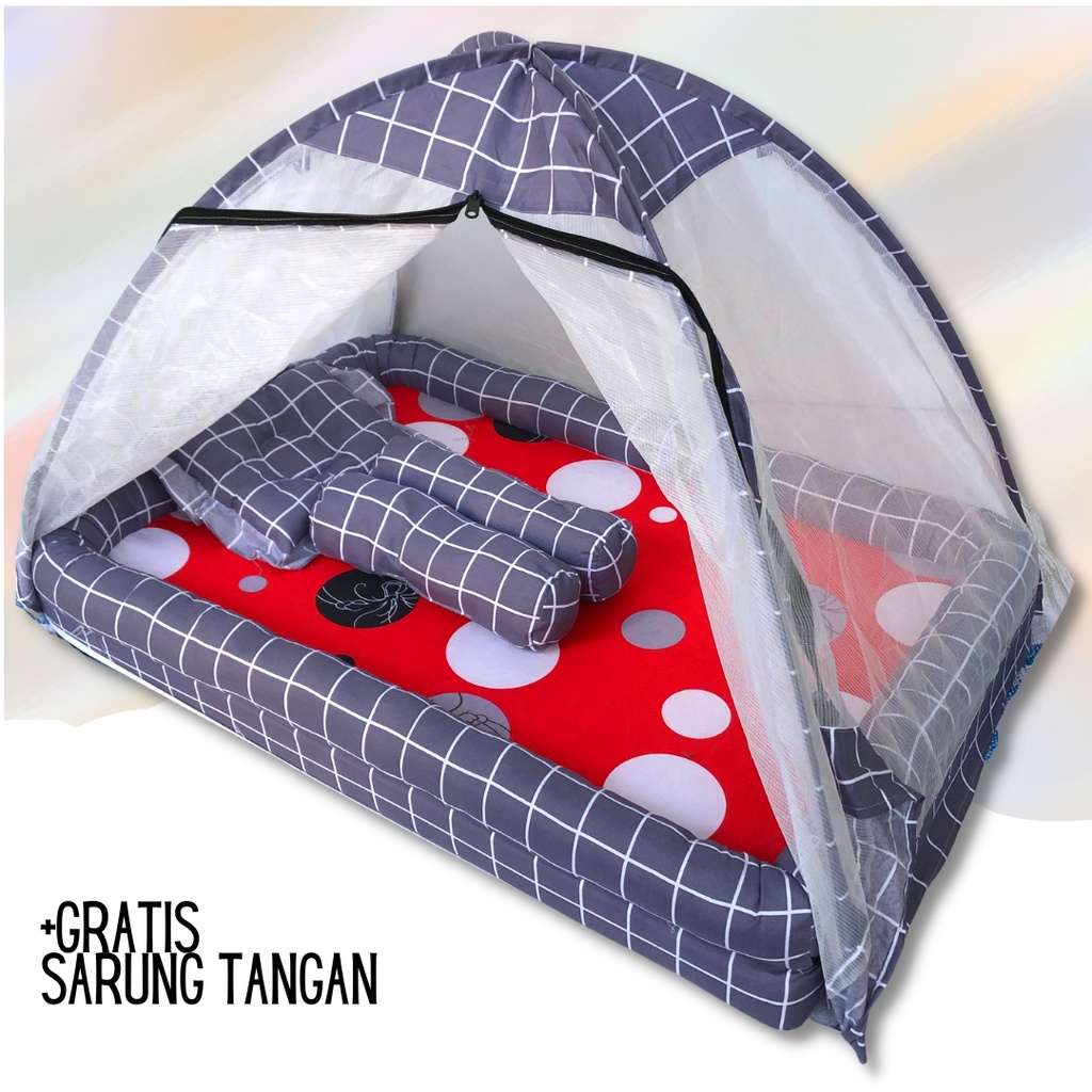 KASUR BAYI SET KELAMBU BESAR BANTAL GULING SARUNG TANGAN BABY BEDCOVER IMPORT TERBARU DAN TAS MIKA