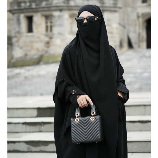 Khaira Abaya Batwing Hitam Mewah Elegan Gamis Syari Premium Set French Khimar Haji & Umrah