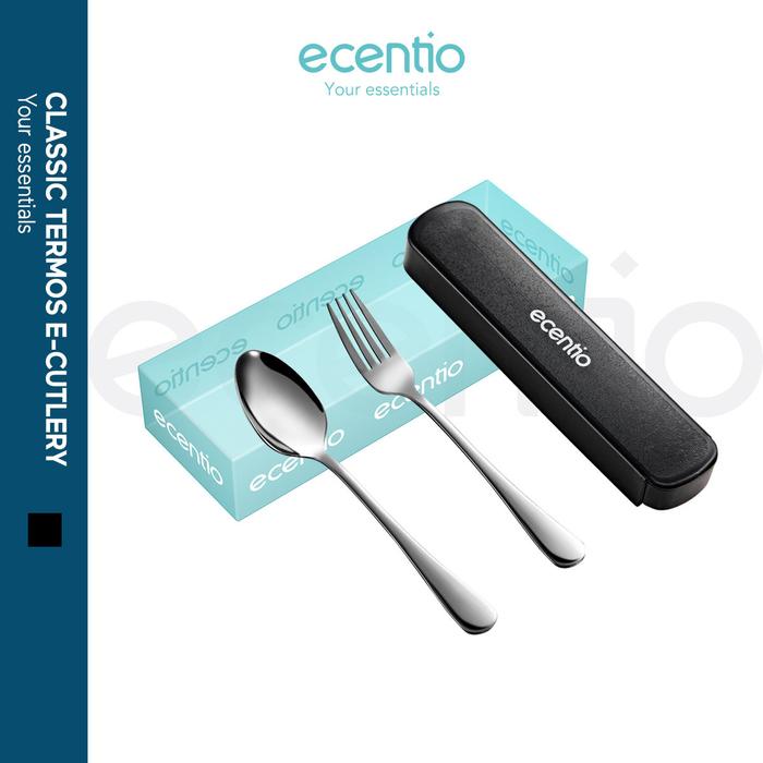 PROMO 8.8 ECENTIO ALAT MAKAN GARPU SENDOK SET STAINLESSSENDOK MAKAN SET 23PCS HITAM