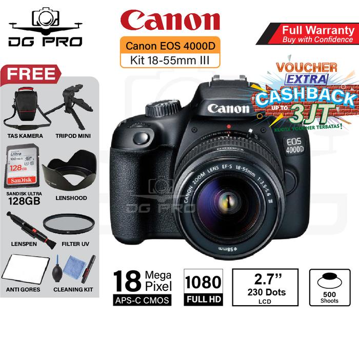 PROMO 8.8 CANON EOS 4000D KIT 1855MM III PAKET BONUS CAMERA DSLR EOS 4000D BODY ONLY A STANDARD