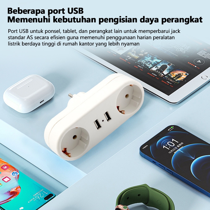 Powerport 2500W Power Soket Stop KontAK Soket Listrik 4 In 1Soket Listrik Standar Eropa USB Charger Power Socket Elektrik 2/3Soket + 2USB