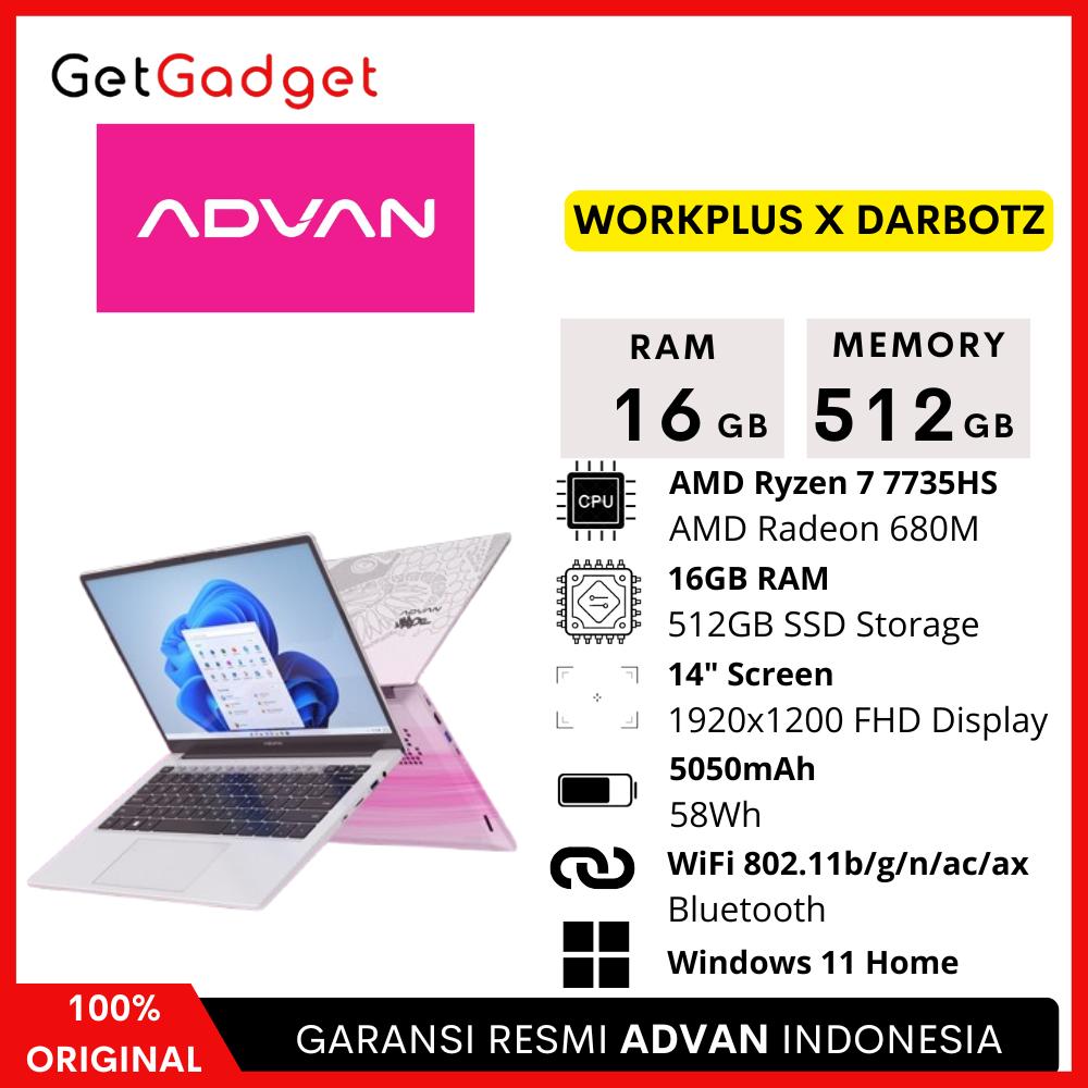 Laptop Advan Workplus x Darbotz RAM 16GB 512GB Notebook Ryzen 7 Windows 11 New Original Garansi Resmi