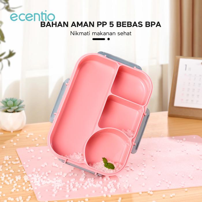 PROMO 8.8 ECENTIO 4GRID KOTAK MAKAN SIANG DENGAN BOTOL AIR LUNCH BOX SET 1100ML BIRU