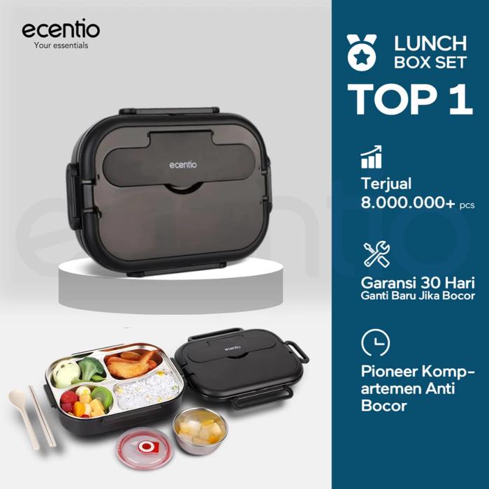 PROMO 8.8 ECENTIO 1L TEMPAT MAKAN STAINLESS STEEL LUNCH BOX KOTAK MAKAN BPA FREE