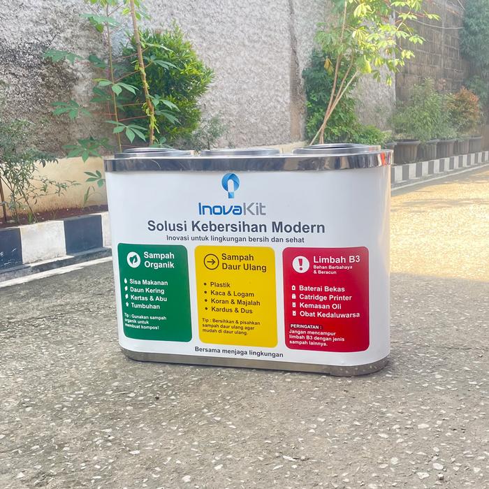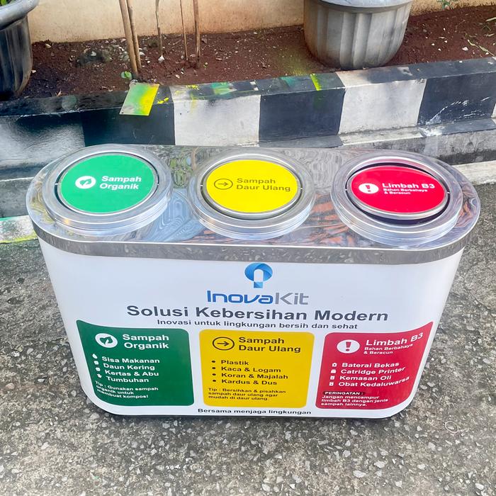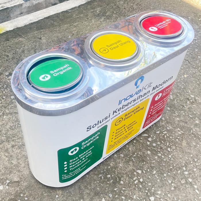 FLASH SALE TEMPAT SAMPAH STAINLESS 3IN1 INOXTRASH TONG PEMBUANGAN SAMPAH SILINDER