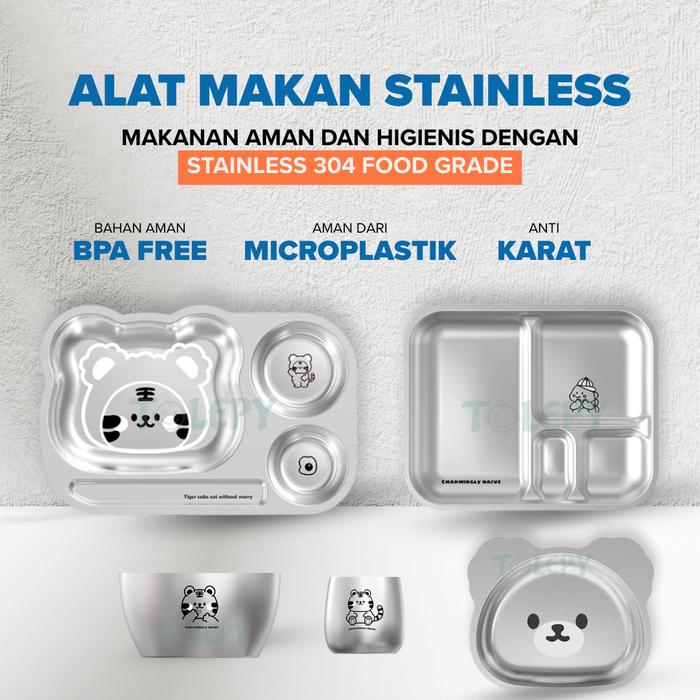 TERLARIS SET PERAATAN MAKAN BAYI STAINESS STEE PIRING MANGKOK GEAS ANTI PECAH AAT MAKAN ANA