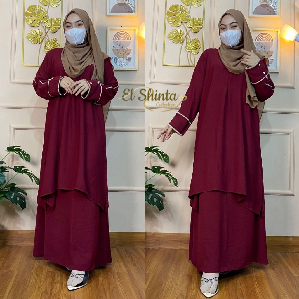 Anahira Set Rok Tunik syar'i Muslim Wanita One Set Tunik Melayu Crinkle Airflow Size M L XL XXL