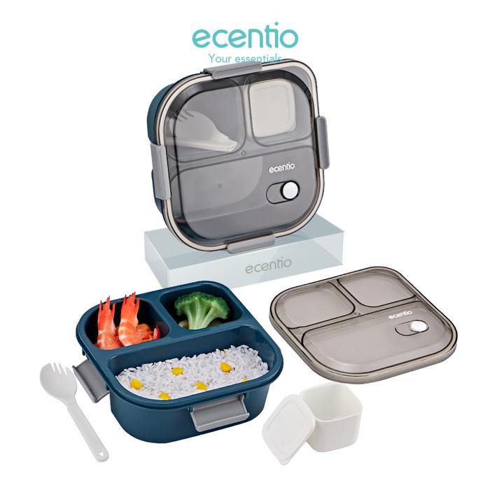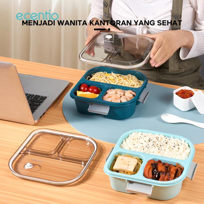 PROMO 8.8 ECENTIO KOTAK MAKAN 3GRID LUNCH BOX ANTI BOCOR BOTOL MINUM SET UNIK 2