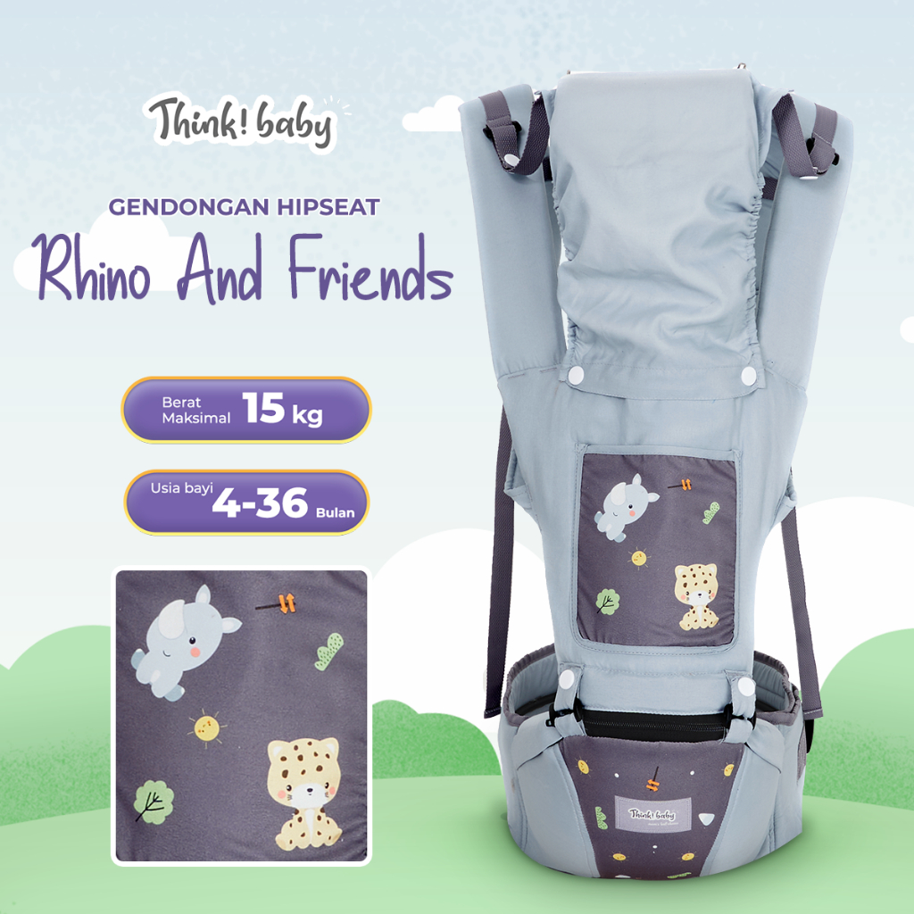 THINK BABY GENDONGAN BAYI HIPSEAT KARAKTER + SAKU + PENUTUP KEPALA