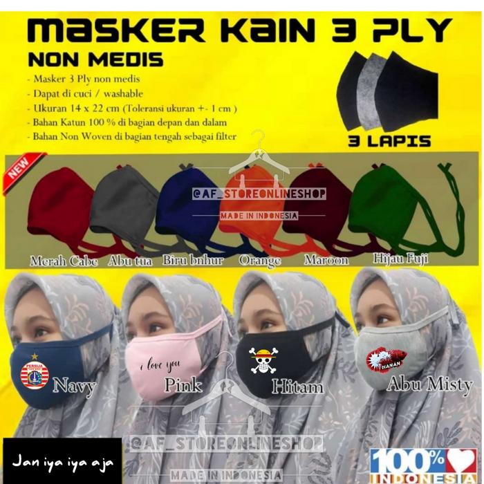 FLASH SALE MASKER KAIN 3 PLY( 3 LAPIS ) KAIN TALI CUSTOM DESIGN LOGOGAMBARFOTO HIJAB 3PLY