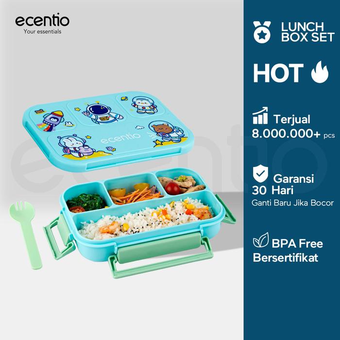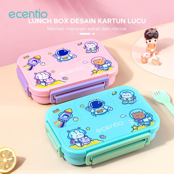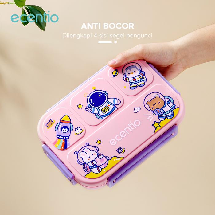 PROMO 8.8 ECENTIO LUNCH BOX ANAKKOTAK MAKAN ANAKKOTAK BEKAL KARAKTER BPA FREE MERAH MUDA