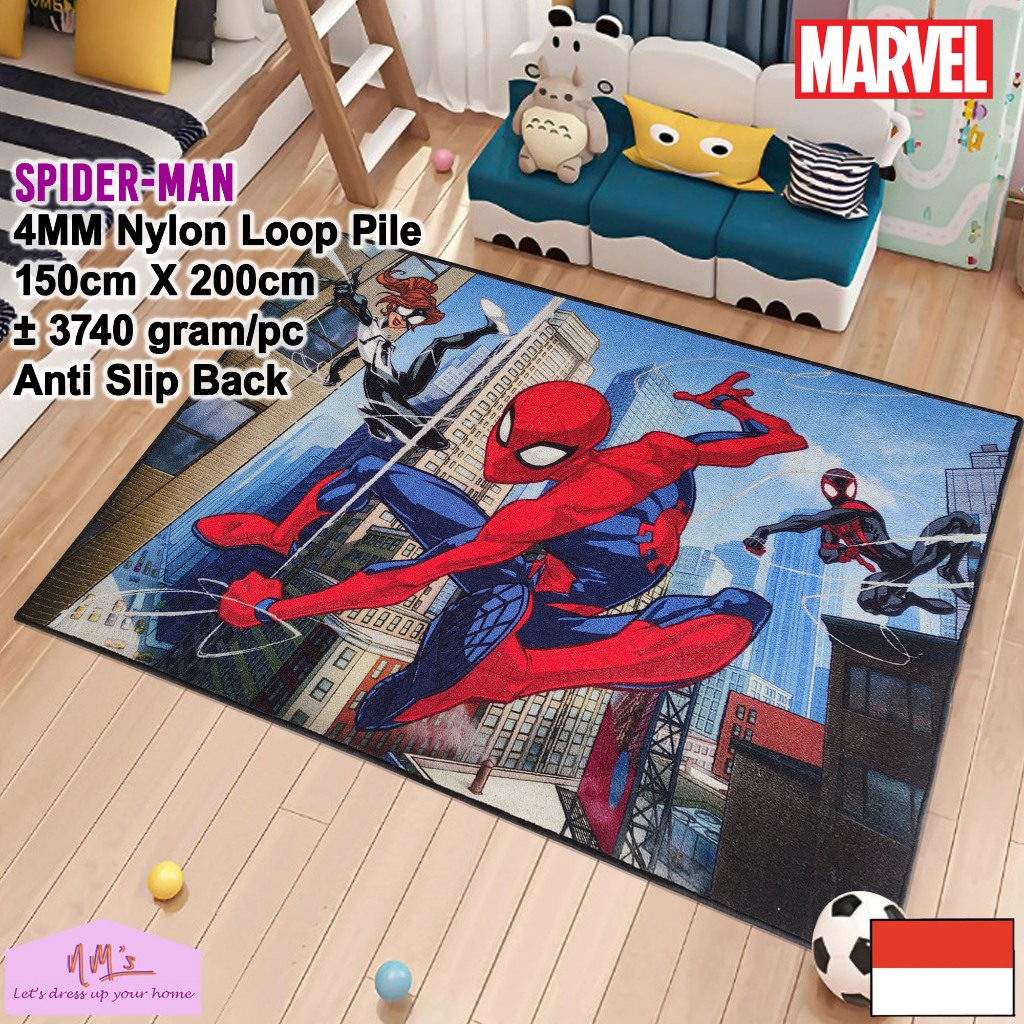 Disney Marvel Official Merchandise Spiderman karpet bermain anak 150 cm x 200 cm anti slip motif kartun superhero karakt