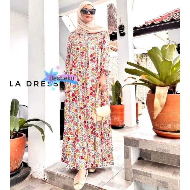 Lala Dress Motif Gamis Dewasa Busui Friendly Bahan Super Adem Outfit Muslimah Kekinian Ld 120 Cm