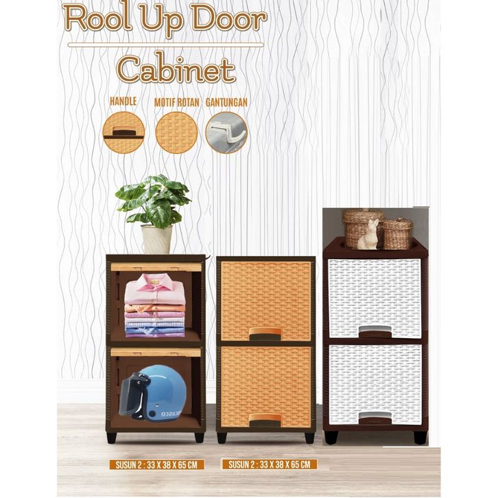 PANDA Lemari Baju Pakaian Plastik AKAKO 2 Pintu Laci Rotan MInimalis PANDA Hitam Putih Full KUNCI