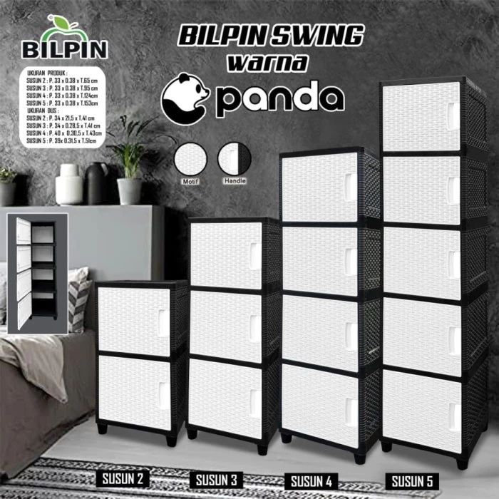 AKAKO Lemari Plastik Serbaguna ZEBRA 1 Pintu Rotan Laci Hitam Putih MURAH