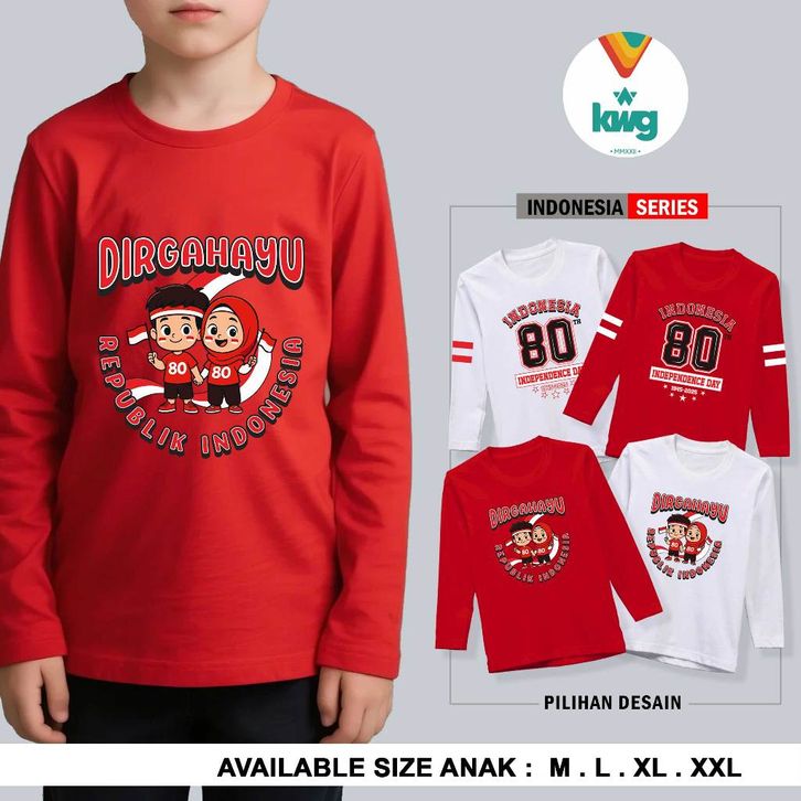 baju 17 agustus anak Kaos Anak Lengan Panjang Merah Putih 17 Agustus Agustusan Cotton Combed 30s Premium Sablon UniSE-