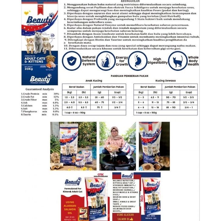 CMK Beauty Premium Cat Food 2 Kg Dry Food - 1kg x 2 pcs = 2kg