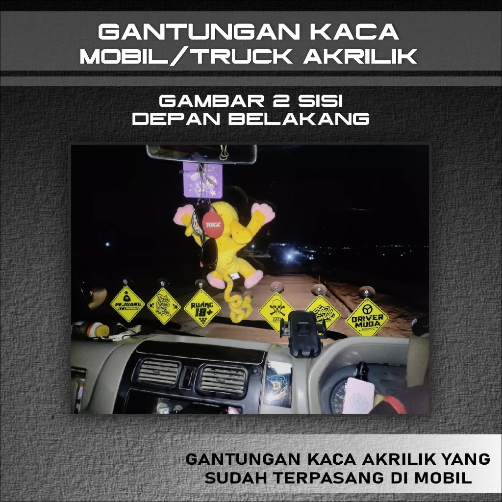 SPEEDCIOUS - GANTUNGAN KACA MOBIL GAMBAR KATA KATA VIRAL DRIVER BOLAK BALIK DUA SISI DEPAN BELAKANG WARNA KUNING SOLID F
