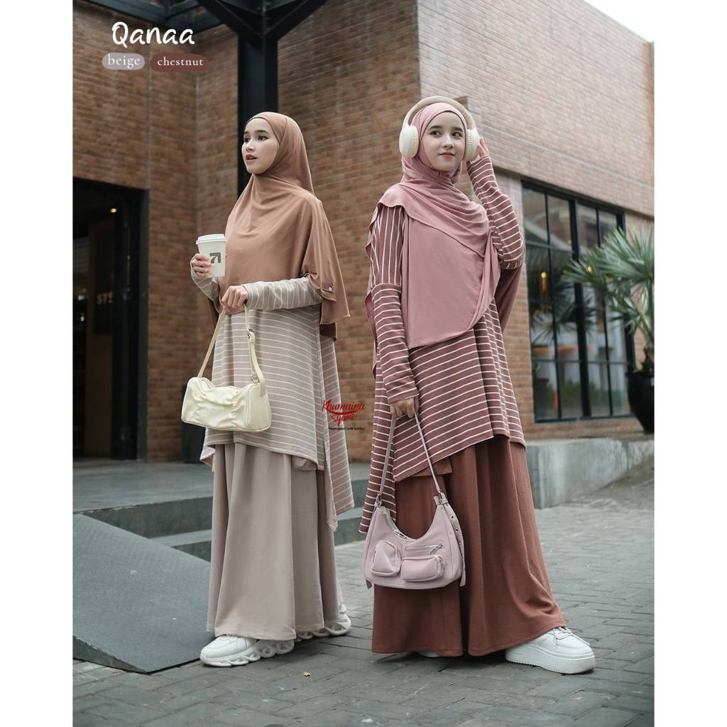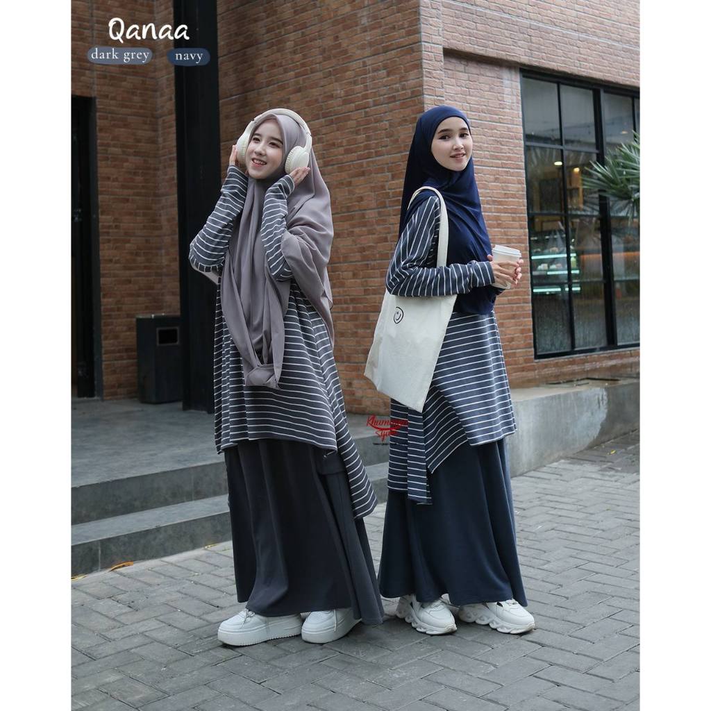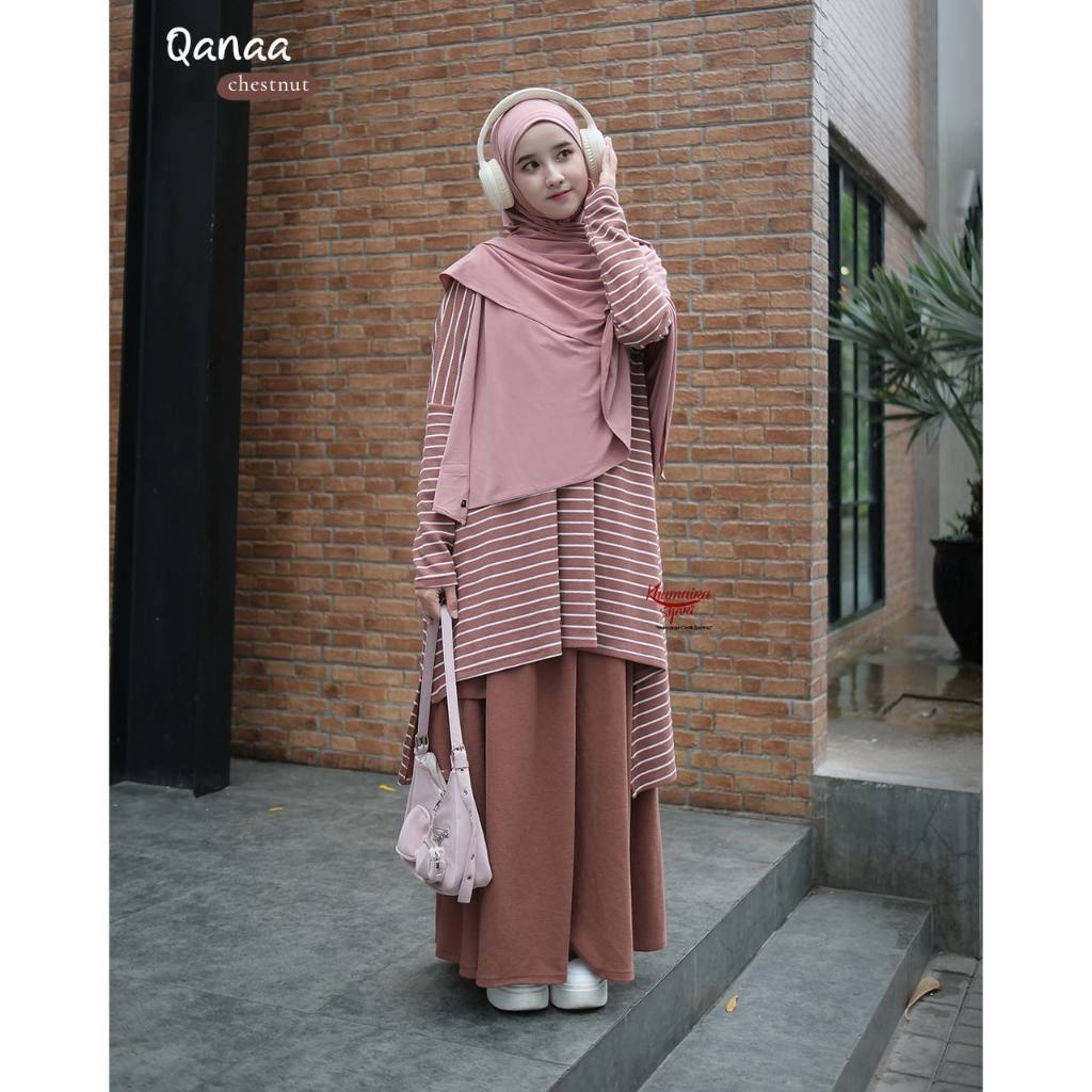 Qanaa one set by Khumaira Syari | Setelan tunik Rok knit Premium one set sporty