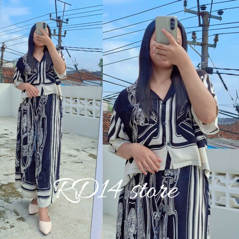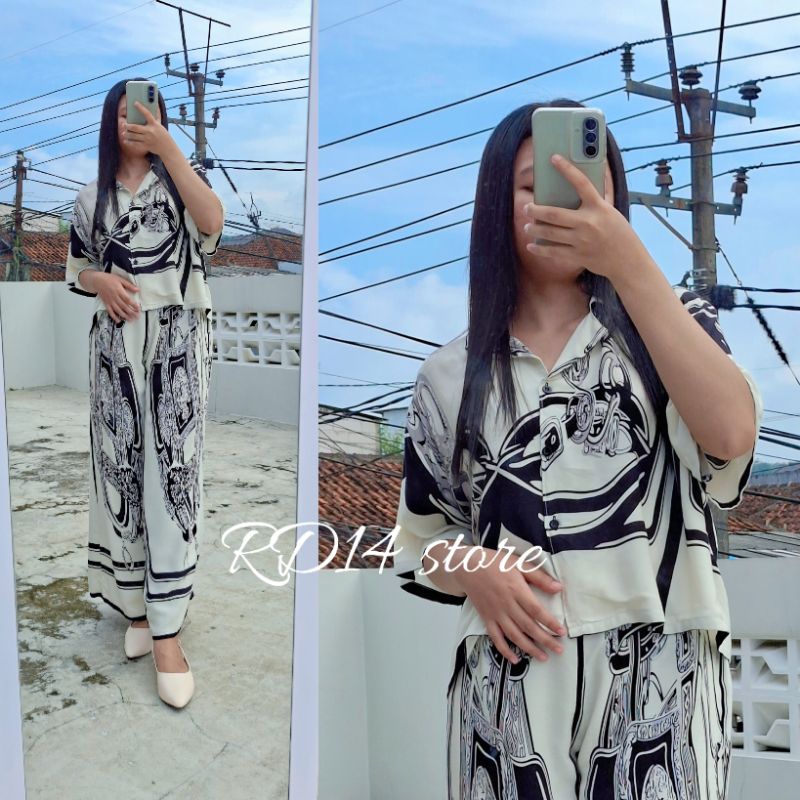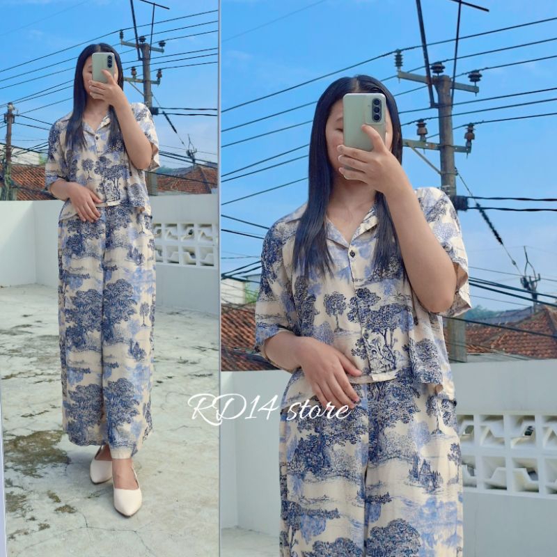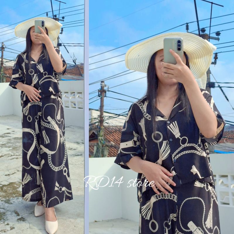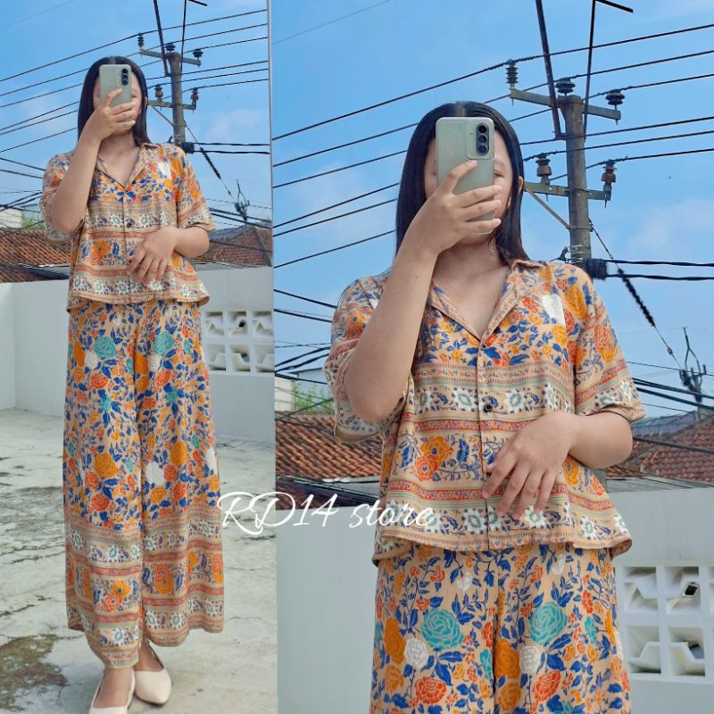 New One Set Crop Setelan Celana Kulot Wanita Hightwaist /Set Piyama/Rayon viscose Busui Friendly