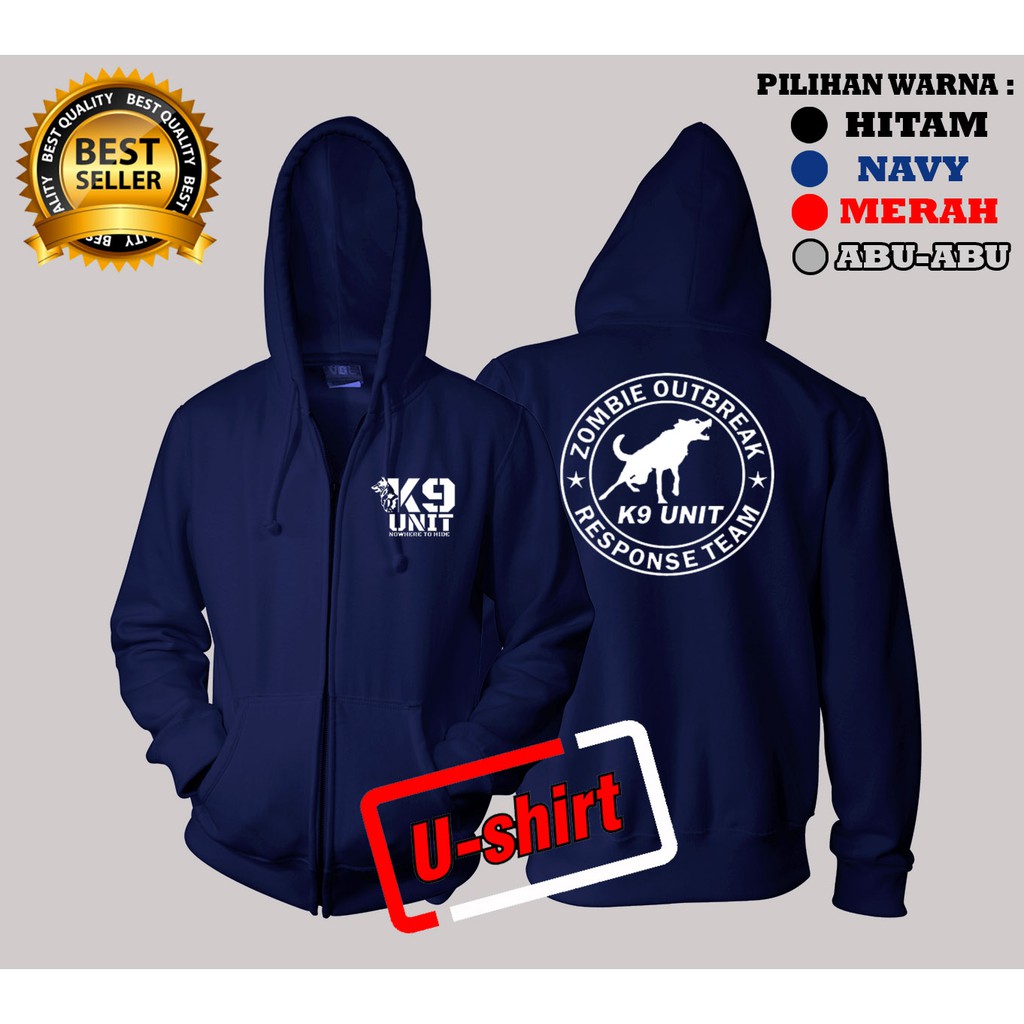 JAKET SWEATER HOODIE ZIPPER K9 UNIT K9 MURAH TERBARU PRIA&WANITA DSITRO U-SHIRT