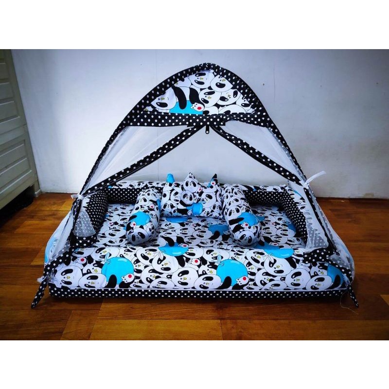 KASUR BAYI KOLAM KULAMBU TENDA MOTIF PANDA HITAM