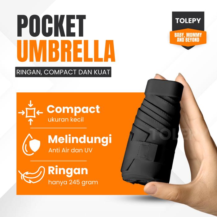 TERLARIS POCKET UMBREA TRAVE PAYUNG MINI KECI PORTABE KAPSU CAPSUE HITAM