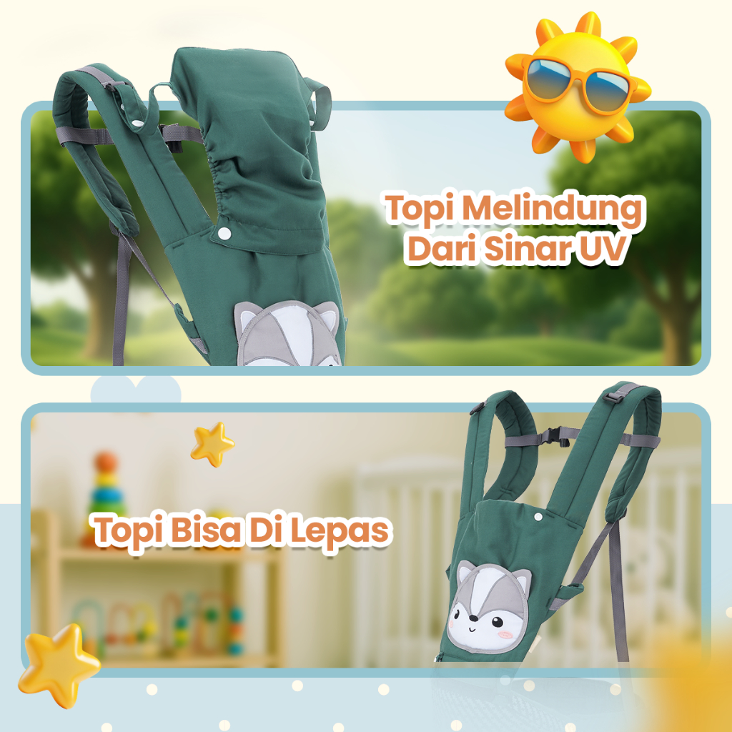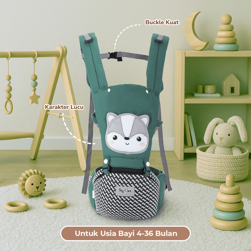 BIG BEE GENDONGAN BAYI HIPSEAT KARAKTER SKUNK SERIES - BBG0031HIJAU