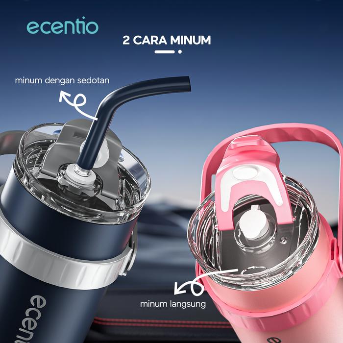 PROMO 8.8 ECENTIO TUMBLER 1200ML STAINLESS STEEL 304 BOTOL MINUM TAHAN PANAS DAN DINGIN MUG PORTABLE BPA FREE BIRU