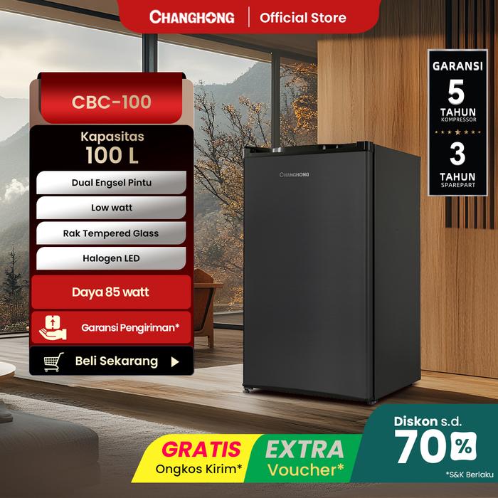FLASH SALE CHANGHONG KULKAS MINI ANAK KOS LEMARI ES 1 PINTU REFRIGERATOR KAPASITAS 100 LITER PENDINGIN MINUMAN HEMAT LISTRIK – CBC 100 BLACK HITAM NO NEED