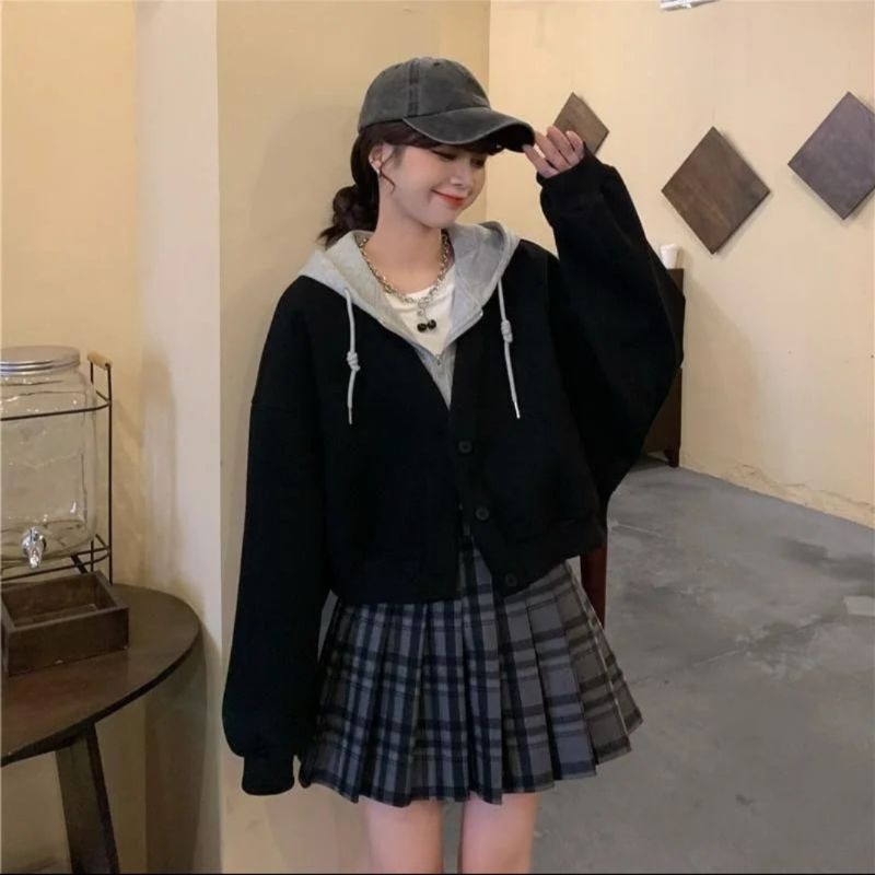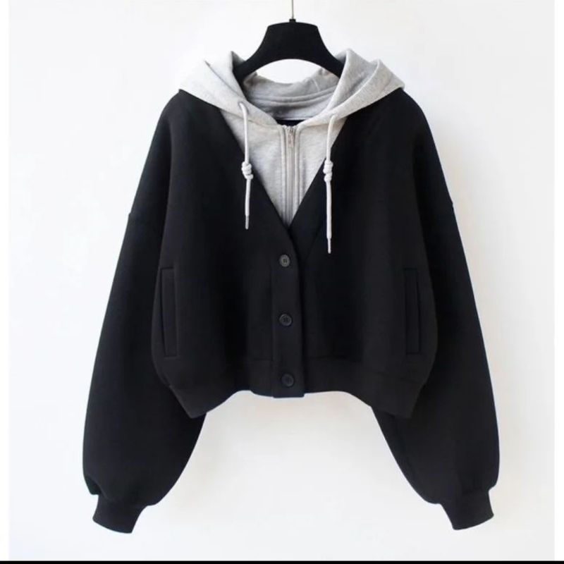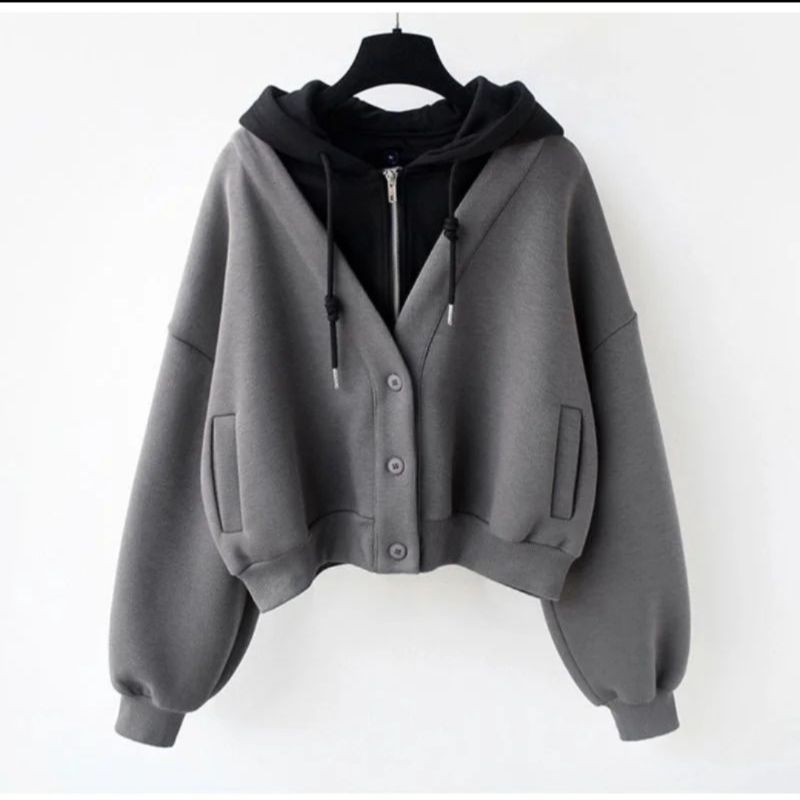 TWOTONE JAKET ZIPPER | SWEATER HOODIE WANITA