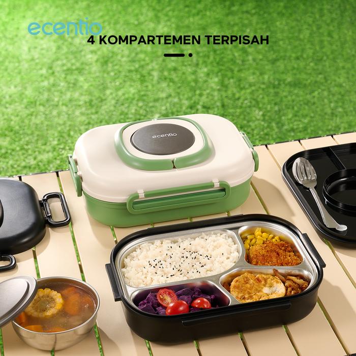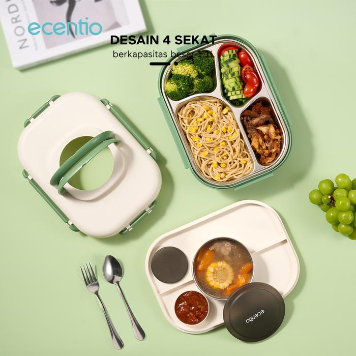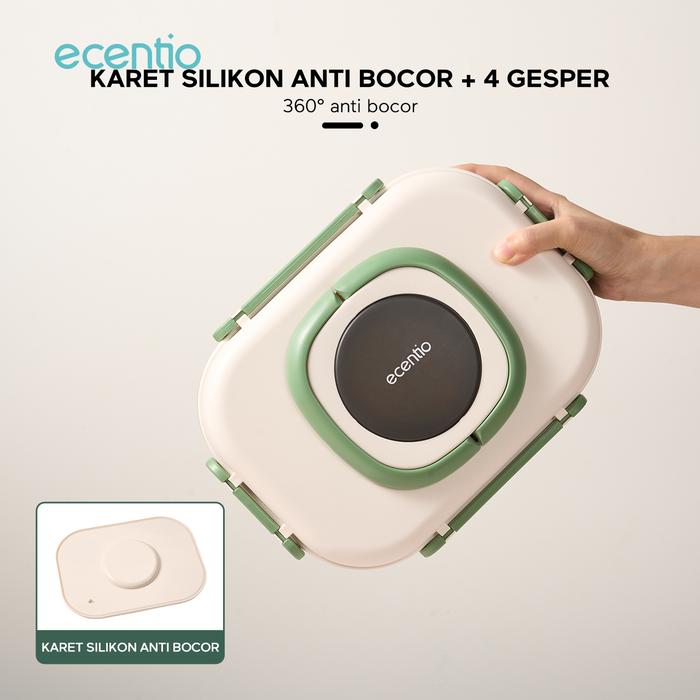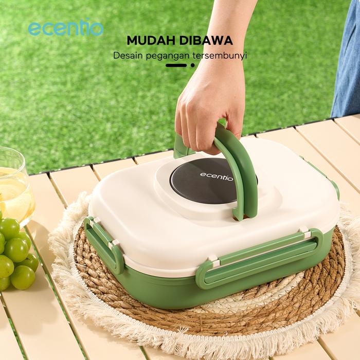 PROMO 8.8 ECENTIO 1100ML LUNCH BOX KOTAK MAKAN SIANG DENGAN STAINLESS STEEL HIJAU
