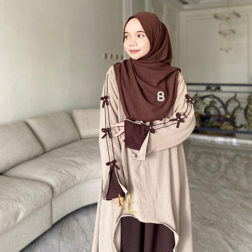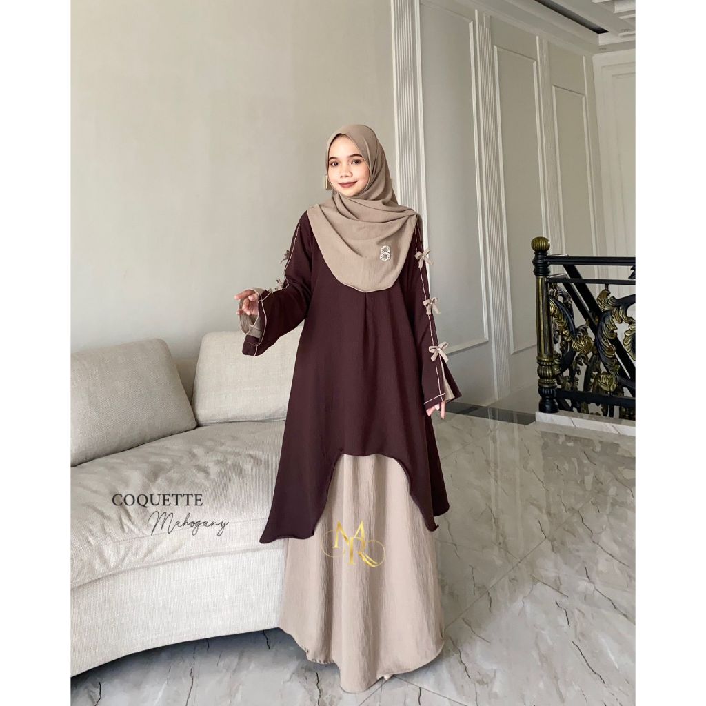 One Set Wanita Kekinian Tunic Atasan dan Rok Malaya Syari Crinkle COQUETTE Set Rok QINARA Malaya Kombinasi Pita - E