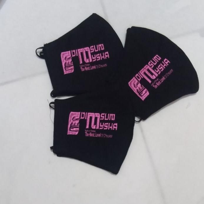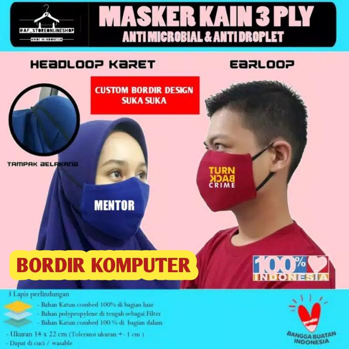 FLASH SALE BORDIR MASKER KAIN 3 LAPIS CUSTOM DESIGN SUKA SUKA LOGO GAMBAR TULISAN HEADLOOP 2 SISI