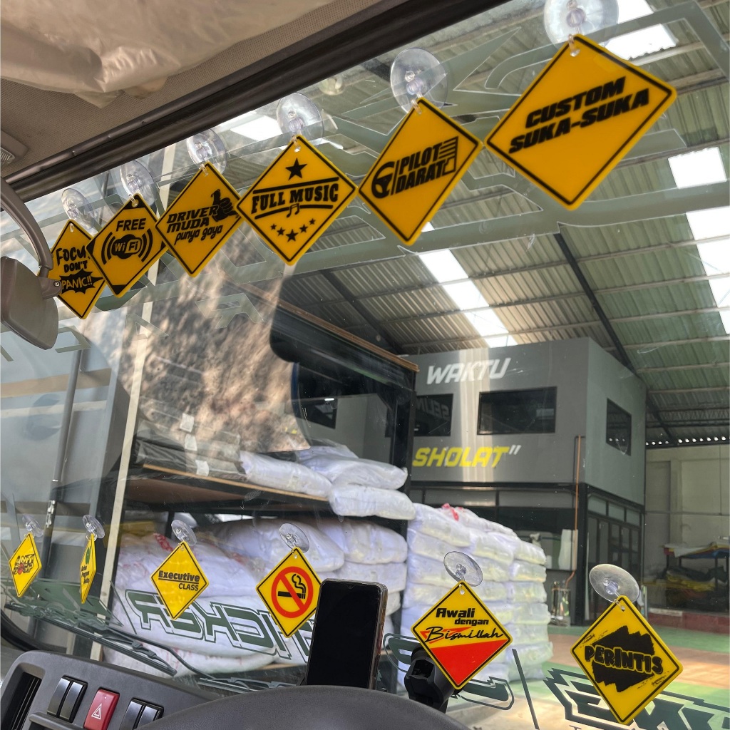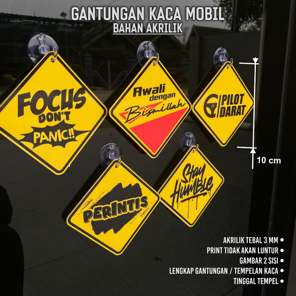 GANTUNGAN KUNCI KACA MOBIL HIASAN TEMPEL KACA TRUK BUS PICK UP - KECIL SISI ±8CM BAHAN AKRILIK