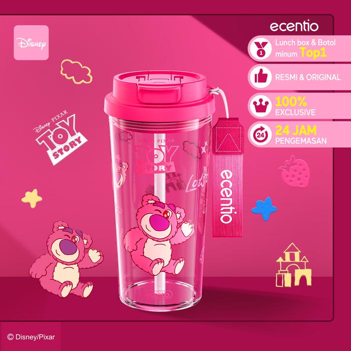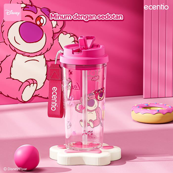 PROMO 8.8 ECENTIO&DISNEY BOTOL MINUM PLASTIK PORTABEL 580ML PINK LOSTO DESAIN EKSKLUSIF BEBAS BPA DENGAN SLANG LEAKPROOF DESIGN