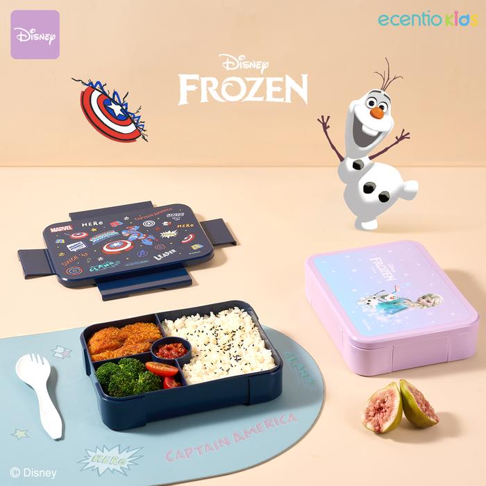 PROMO 8.8 ECENTIOKIDS DISNEY LUNCH BOX SET ANAK BAYI ANTI TUMPAH TEMPAT MAKAN MARVEL CAPTAIN AMERICAELSA LUCU FREE SENDOK PRINCESS