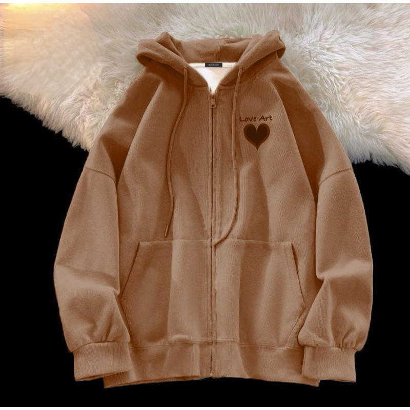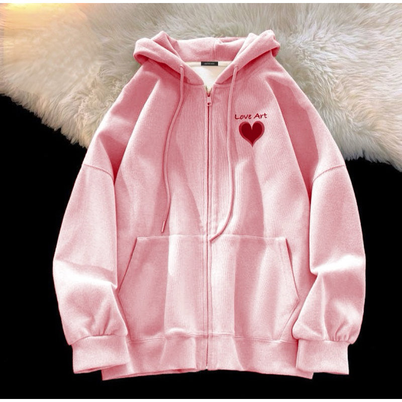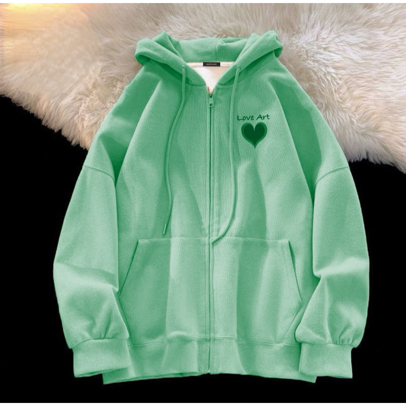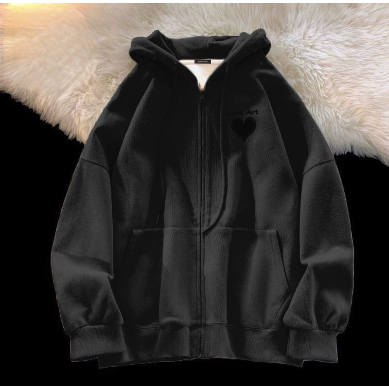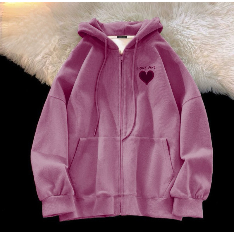 JAKET ZIPPER HOODIE WANITA - LOVE ART HOODIE ZIPER WANITA KOREAN STYLE FLEECE PREMIUM